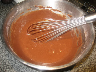 I really wanted chocolate cake. And when I saw this recipe on Kuki's Cookbook, I thought the cupcakes looked pretty. But the recipe it kind of scared me. It's because the idea of peanut butter frosting-raw peanut butter mixed with butter-didn't sound appealing. But the picture looked so pretty, so I made them. When they were done I was scared to try them. I finally did and they tasted fine. The chocolate cake was descent and the peanut butter frosting was good as well.