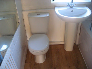 But the core of the bathroom had problems. The floor was sloping. (And the "wood" in the picture above? It's vinyl.) The shower over the tub was next to the window so water would pool in the window sill. The window wasn't insulated, the plumbing was dodgy, the electrics weren't to code and we had to knock the ceiling down as part of the loft conversion.